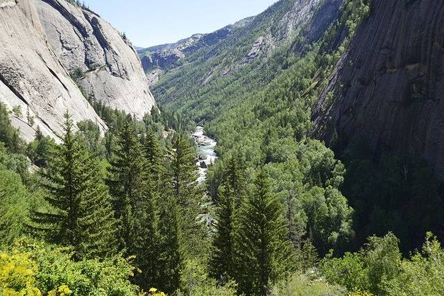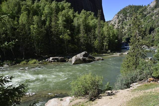26日我们早上8点出发,参观了额尔齐斯大峡谷,风景确实不错,但是没有什么特别领人印象深刻的地方。从大峡谷景区出来,我们中午回到可可托海镇用餐之后出发前往布尔津,路上绿意渐浓,不禁让我们对即将开始的喀纳斯之旅充满了遐想。