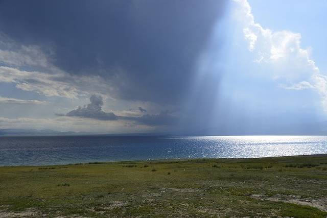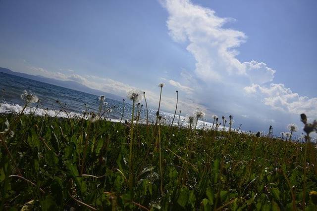 29日8点左右,我们从克拉玛依出发,前往伊犁。第一站我们去的是赛里木湖,恐怕是对喀纳斯太失望了,本来对所谓“大西洋的最后一滴眼泪”没有什么期待,但是到达塞里木湖的那一刻,我便深深被这里的景色而打动。游人很少,寂静的岸边,只有波涛涌动的声音,宁静的天空,只有白云飘过;满眼中只有绚丽的颜色,连天边飘来的乌云挡不住灿烂的阳光,湛蓝的湖水衬托着草原上的鲜花。美!真的很美!瞬间,我知道我来到了心灵中的新疆,此刻,生活中所有的烦恼我都抛到了九霄云外,只想静静得享受这难得的心灵的净化。