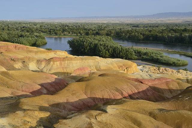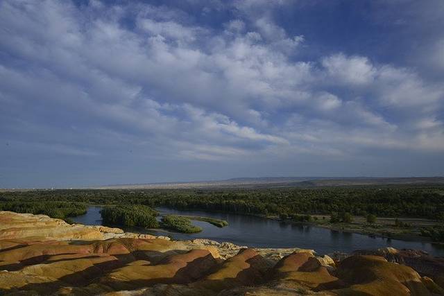 天黑得晚,于是决定去五彩滩一睹风采。五彩滩在布尔津城北去往喀纳斯的必经之路上,所以如果不着急赶路,去喀纳斯的途中顺便参观也可以。这里的色彩确实美丽,不过需要强调一下:景区的蚊虫实在猖獗,建议去景区的朋友一定穿长的衣裤并做好防护准备。