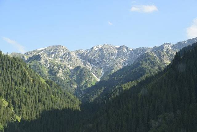 如果不是为了赶路,我真的不想离开这片让我得到宁静的湖水。下午七点,我们出发前往霍尔果斯口岸,路过了传说中的果子沟大桥。大桥严禁停车,电子眼从各个角度全方位覆盖,虽然大桥上无法留影,但是周边的景色已经饱览无余。一路层峦叠嶂、郁郁葱葱,天山山势巍峨不输阿尔泰山,此时此刻,我发现自己已经爱上了新疆。爱上了伊犁。