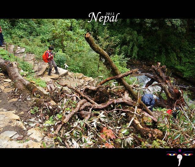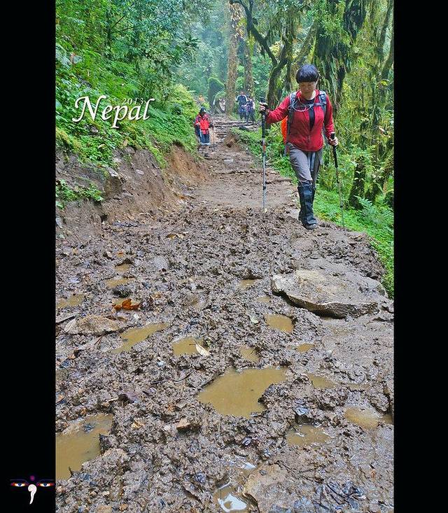 今天是徒步的第八天,开始下降,也是最考验体力的一天。为了赶出一天的时间,准备从ABC直接下到乔姆隆(Changrong),上来的时候,这段路我们可是走了3天呀。