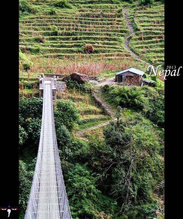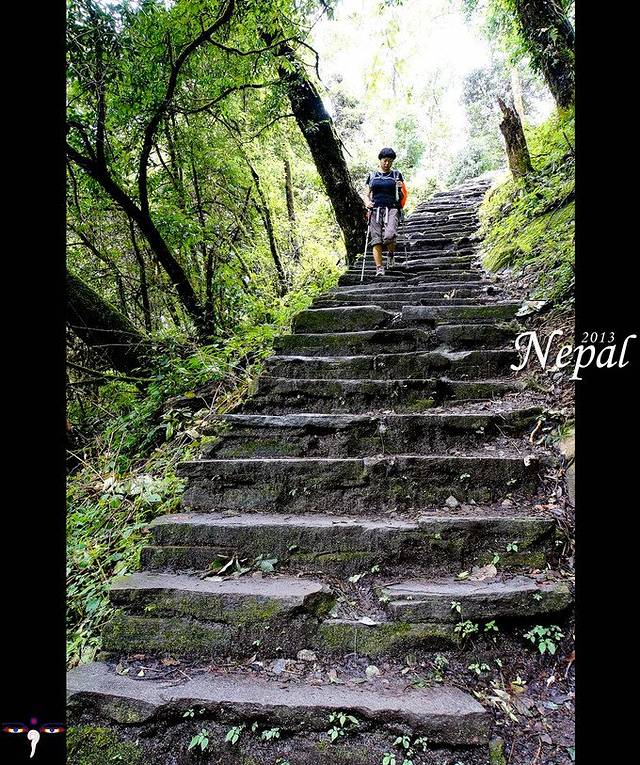 早上7:50吃完早餐就出发了,一路从海拔4310下到Doven,2330米的希努瓦Sinuwa,再下到1900的山底河边,走过吊桥后,最痛苦的一段才刚刚开始,再一次开始残酷的抬升,回到2330米的Changrong镇最高的GH。全部都是石头台阶,相当于110屋楼的高度,这个强度让我真是很痛苦。