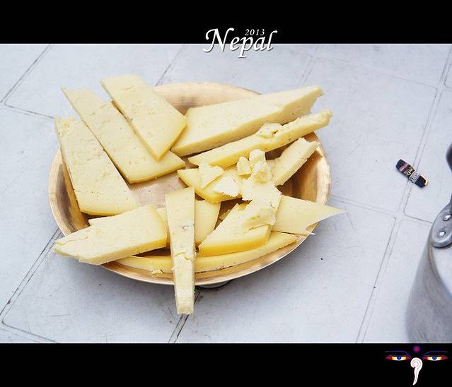 当地人土法制作的奶酪,据说,这东西含钙量高,热量也高,体积还小,吃了可以迅速补充体力。于是我们买 了一块,闻起来臭臭的,吃起来还可以,浓浓的奶香,但是并不是每个人都受得了。于是,也分了些给小挑夫们吃,他们很喜欢。