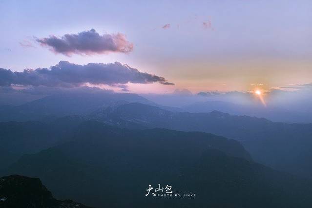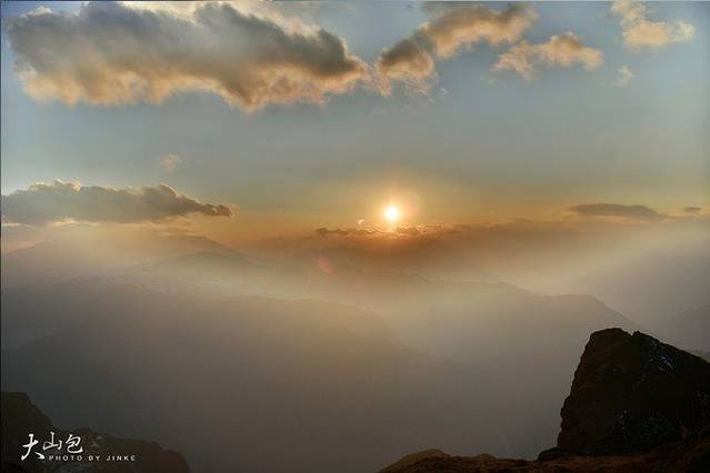 日落时分,站在群山之巅眺望远方,大气中水气凝结,使得群山笼罩在一层白雾之中,犹如披上一层薄薄的面纱,与天边日落交相呼应,这时你会感觉到真正的震撼,可惜到达的时间太晚,都没时间支撑三角架~