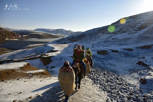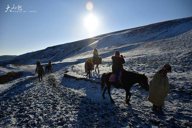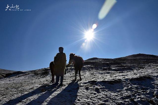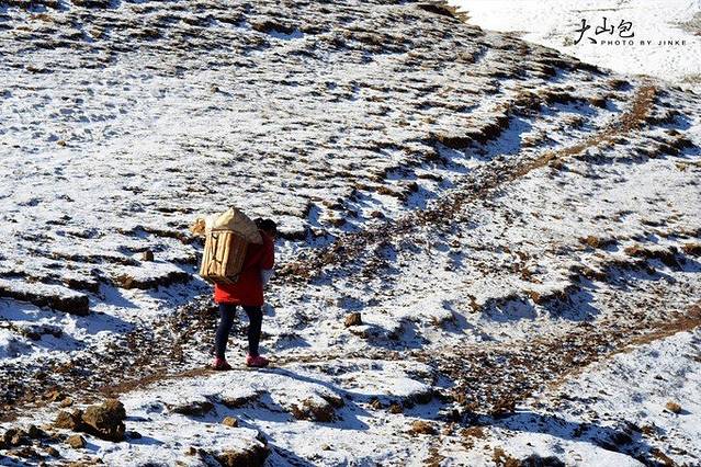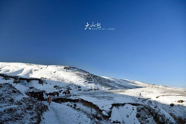白雪覆盖的大山包,放弃了徒步爬到山顶的打算,只有马匹是最好的交通公具,20元/人一趟,当地人牵着马匹带着你走,还是很稳~