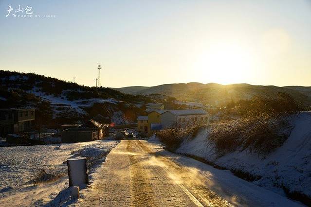 晚上大山包乡下起了大雪,第二天早上起来地上车上都是厚厚一层雪,折腾了半天才开始出发,结果路上听说鸡公山峡谷的路都结冰了没法通行,有当地人站在旁边说花300元带我们去小路不要钱还可以直达景区山顶,大家商量后,就打算先去大海子看日出,结果去的路上迷路了,大家就在山上半路停车一起下来看日出~~