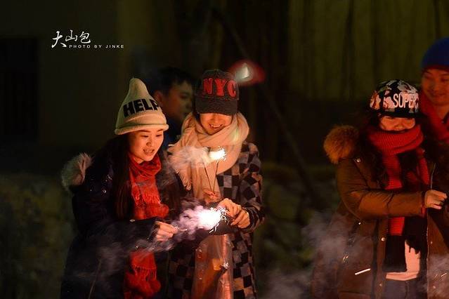 正值春节的时侯,来的路上很多地方有卖烟花的,正好顺路买了几包,晚餐后大家在大山里放着烟火过一个愉快的新年~