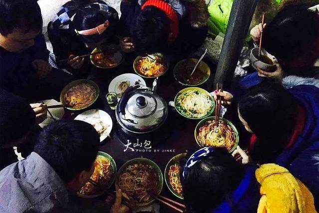 一直到晚上8点过,我们才回到酒店,一个个累得够呛,又冷又饿,忙碌了一天就只吃了一顿早餐,同行的小伙伴也都到了酒店,大半夜的很多地方餐厅都关门了,酒店旁的那家米线还是很香(也许真的很饿),忘了叫啥名字了,十个人围着小桌子吃米线很是壮观~~~