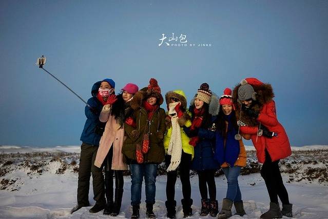 坐在车里还没感觉,从车里出来以后,外面真的是寒风凛冽,风雪交加,室外零下几度配合迎面而来的狂风,大家被吹得东倒西歪无法站稳,即使穿得再多也觉得很冷,结果还没有等到日出,我们就灰溜溜的原路返回了~~