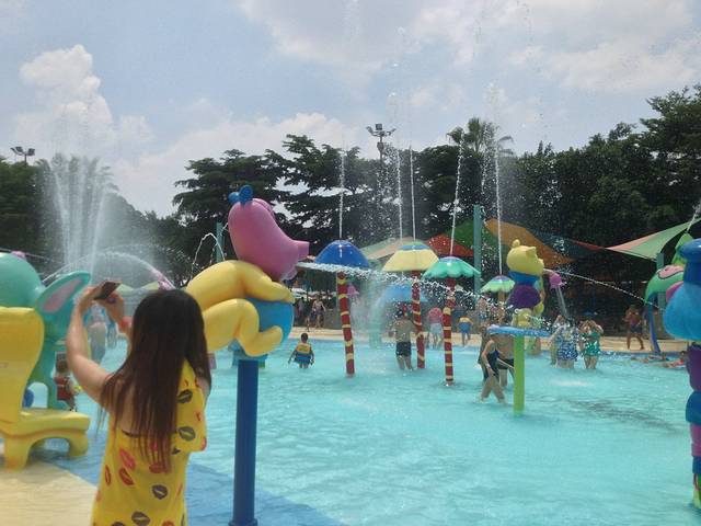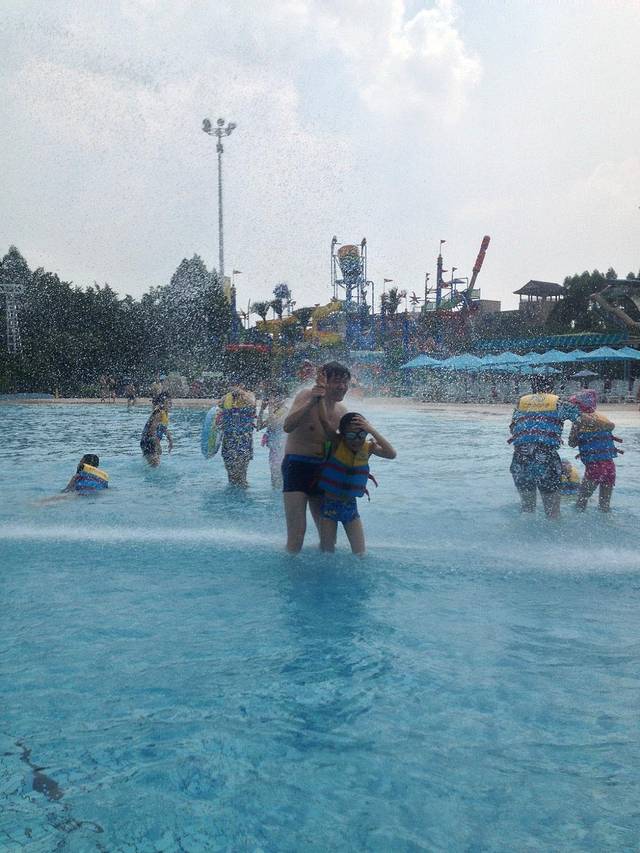 然后开始游玩啦,由于带着小朋友,在征求小朋友意见后,不允许我们大人自己玩,只能玩他们可以参与的项目 ,眼馋馋地从“垂直极限”旁走过,真可惜,好多美女在这里需求刺激。继续往前,走到“造浪池”,孩子们一看就欢呼起来,急不可耐地往池里冲去。(上传几张不雅照)