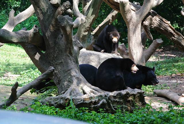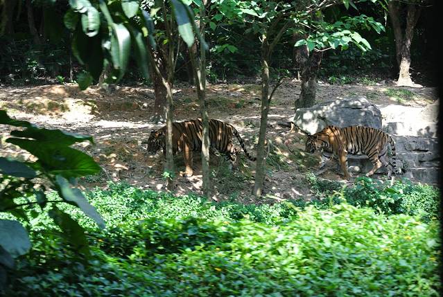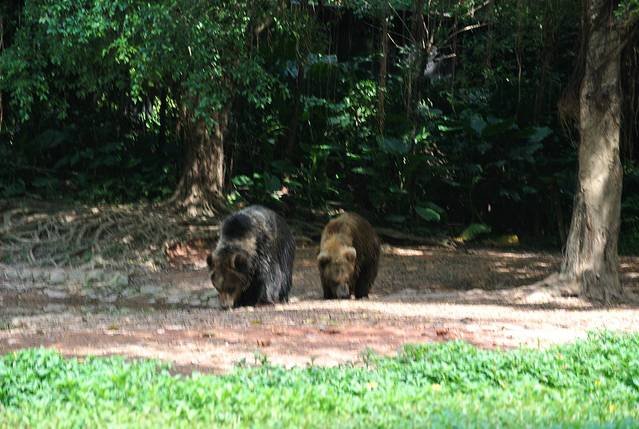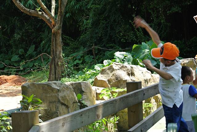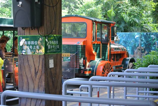 在酒店用过早餐(维也纳的早餐实在不咋地,种类偏少,不过吃饱没问题),徒步往长隆酒店方向走,大约10分钟左右的路程,在进入景区后第一个十字路口右拐就有一个免费巴士停车点,搭免费巴士到动物园南门(好像是两站),下车后到马路对面换成去鳄鱼公园的班车,上车后第一站就下。离车站不远就是北门了!根据大家的推荐,计划从北门进,南门出。)