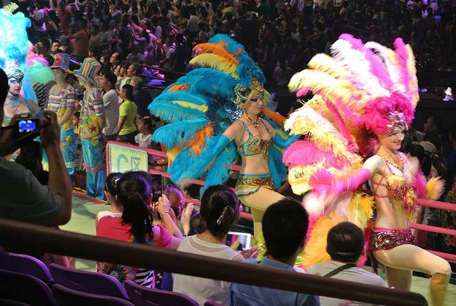 4、 坐上层+中间+贴近栏杆的区域是最佳的。也就是中间那一排,紧挨着VIP的C\D区。(VIP区一个人再多花100就能进,C\D区靠中间部分据说是留给长隆酒店客户的,多花50也能进)