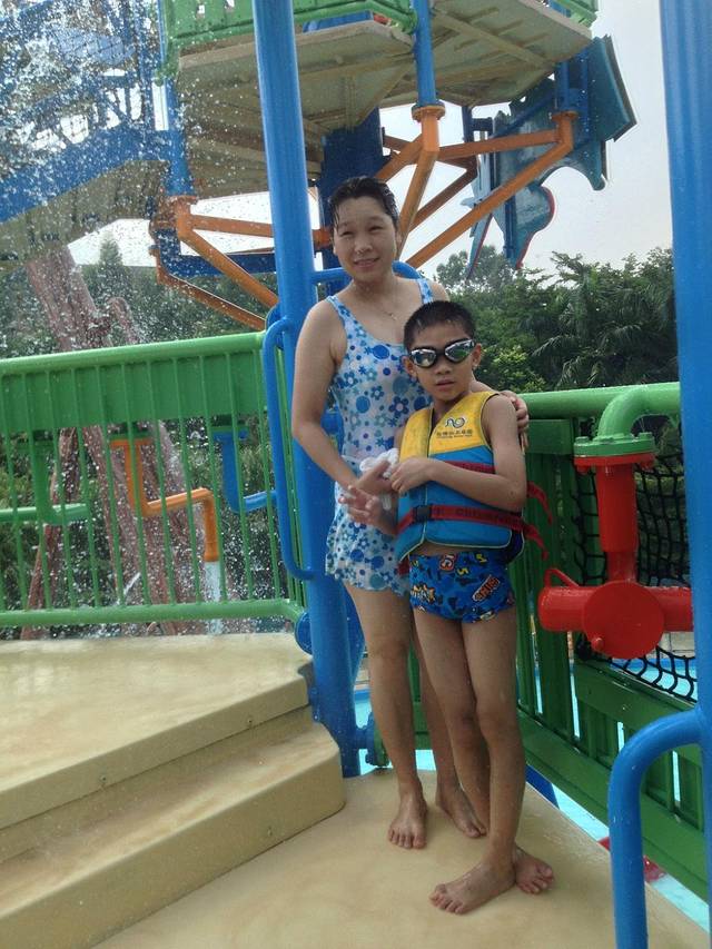 从维也纳酒店到水上乐园东门(据说只有暑期开放),步行15分钟左右,就在长隆酒店旁,进门前在售票处右边的服务台跟服务人员咨询要怎么玩合适,工作人员会跟你详细介绍哪些是大人玩,哪些是孩子玩的,路线要怎么走。