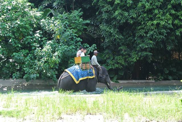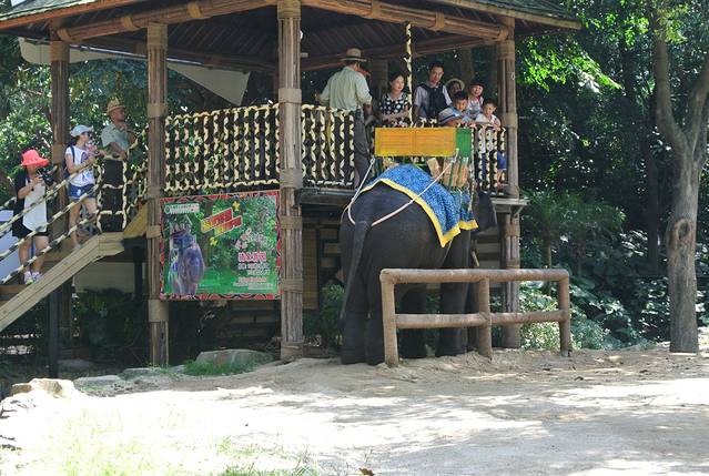 往熊猫餐厅方向走,可以骑大象走一小圈,时间也就一两分钟左右,一人100元,两人150元,要求身高必须大于120cm,小小朋友就不能参加了。