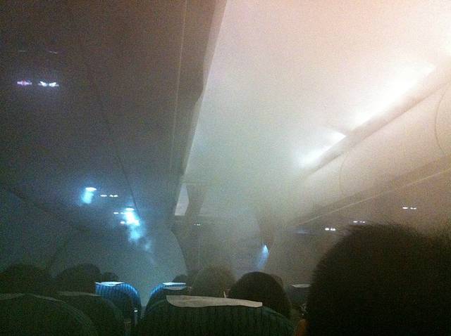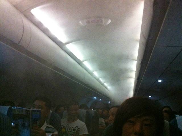 飞机起飞的时候出现一个花絮,机舱里喷烟雾,吓得部分乘客惊慌失措,有的直接站立起来按呼叫服务按钮。要重点说明的是:深航的机组人员没有任何安抚行为,我估计他们也懵了,没遇到过类似情况,要不然至少应该语言安抚一下。