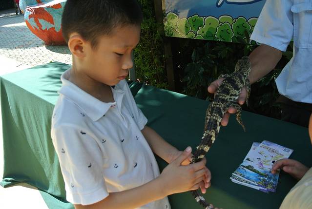 前往考拉园的路上,有“鳄鱼公园”的在摆摊介绍,带了几头变色龙、鳄鱼给小朋友们观赏: