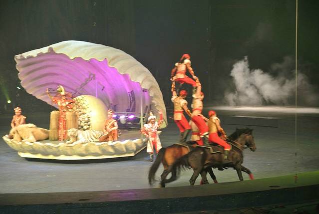 我们15点左右到酒店,办理入住手续花了不少时间,退房和入住的都太多人了(周日回程的人也多),进房间后都还没打扫。在一个阿姨的建议下直奔马戏团排队去(我们收到的门票是17点的,网站订购的场次是随机的,平常只有20点那场),进入长隆景区后,第二个路口左边就是大马戏。使用短信收到的取票码和订票手机的后4位数,可直接在电子售票机打印门票,既省钱又能免去排队买票时间。