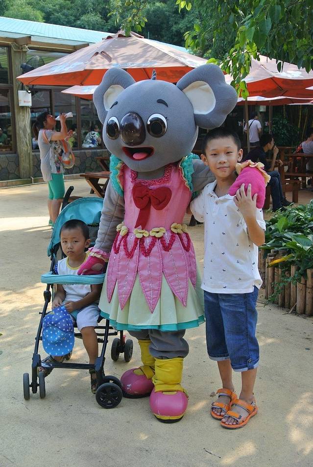 与考拉形象大使合影,这个不用花钱。小小朋友已经累得挤不出笑容了: