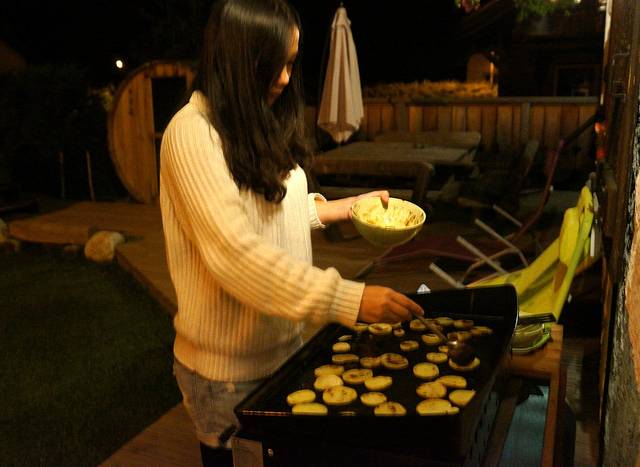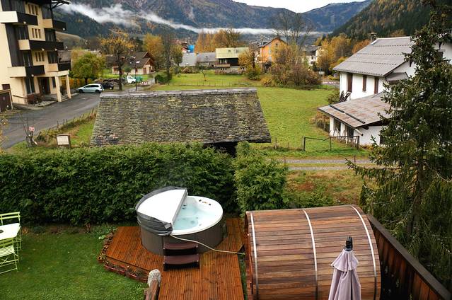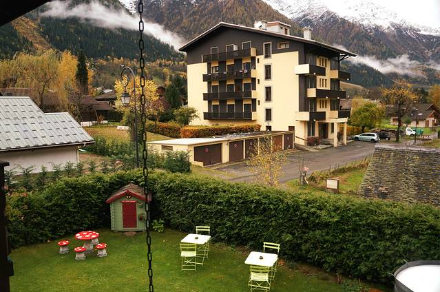 见到这个旅馆的第一眼我就爱上它了!一楼有厨房和钢琴。窗台上摆满了花。院里有烧烤架,桑拿桶和圆形的室外浴缸,浴缸里的水冒着腾腾热气,冰川和勃朗峰近在眼前。