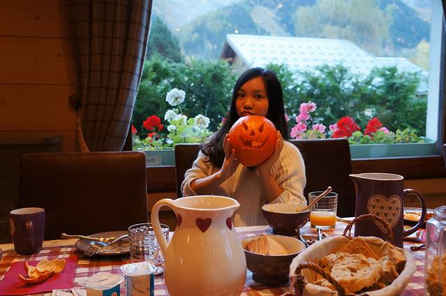 晚上其他的客人陆续回来了,一对法国 夫妇住在一楼,4个来自希腊 雅典 的男生和我们住在二楼。因为万圣节快到了,4个男生在二楼客厅里边看球赛边雕了个南瓜头,聊天时问到我学什么专业,我说“economy”。他们说:“Ah..then you can save Grace.”= =