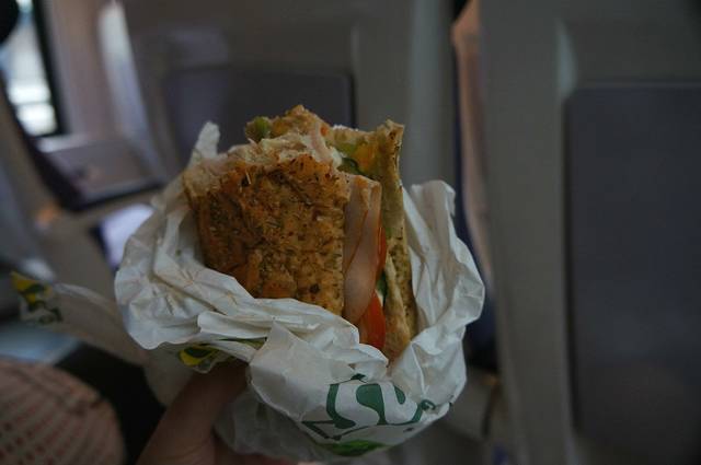 在火车站旁的subway买了个三明 治带着当午饭,出发!