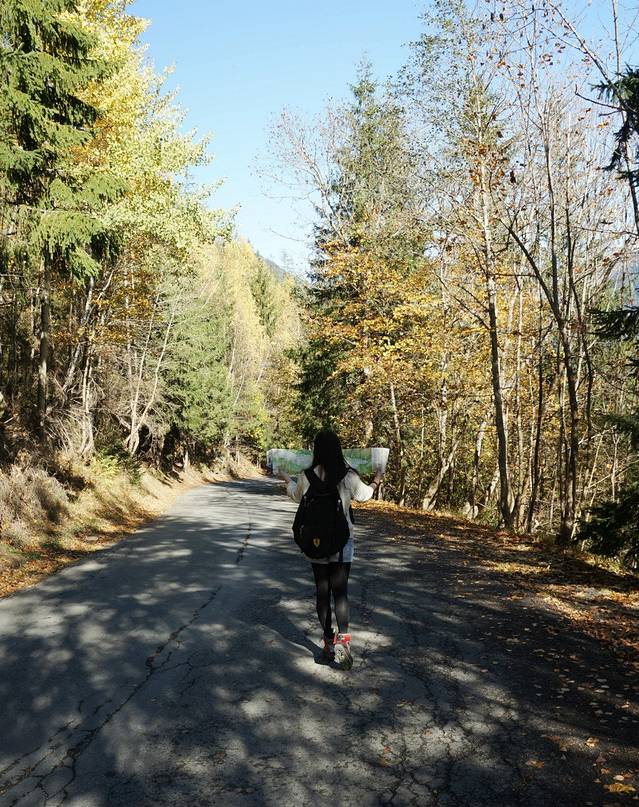 我们先去游客中心(office de tourisme)让工作人员帮忙选了一条徒步线路,法国各地的游客中心真是一个万分helpful的地方。从超市买了三明 治当干粮,又花12欧租了双登山鞋。实际上写着rental得店铺都是租滑雪设备的,我走进去问他们有没有登山鞋他们也说有,只不过穿了之后我觉得那也是用来在雪地里走的,怪怪的。。
