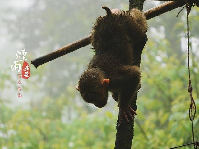 哈哈,听说峨眉的猴子特别没皮没脸的,还真是,在山对面一只大肥猴抱着一个姑娘的大腿不放,大清早哟,就下山非礼妹子来了看的我也提心吊胆的,生怕抢我相机什么的,我真是啥吃的也没带(纯属没脑子,,,怎么能不带吃的呢,爬半路上没被自己给蠢的饿晕掉)又担心他们太野生,挠我一下,这山就不用爬了。所以,其实猴群离我们挺近的,但是拍的照片基本都虚了,因为,,,我手抖啊!!!