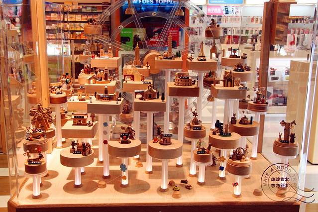 台湾制作的木质八音盒很有趣。有小动物或者小火车,总体样式就是圆盘上有各种会动的场景。挑来挑去没挑到可心的,于是又跑去机场店挑。