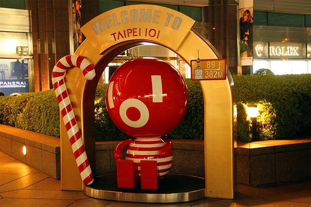 台北101,地标式建筑。建成之日起,俨然台北化身。一至四层是高档百货店,五层是金融中心,地下还有五层,分别是停车场和餐饮区。101观景台,分别在89层和91层,五层售票。
