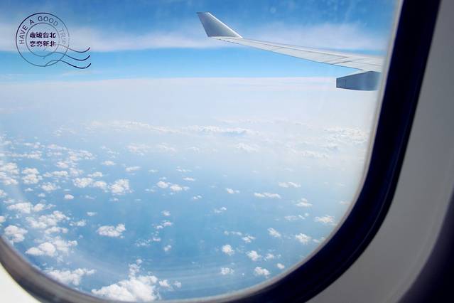 昏昏欲睡中被窗外刺目的白光和棉花糖般的云朵晃到,我俩互看了一眼:台北到了!