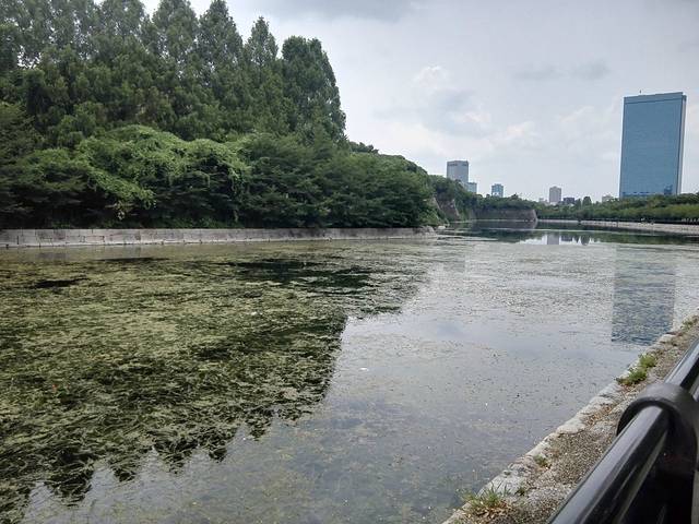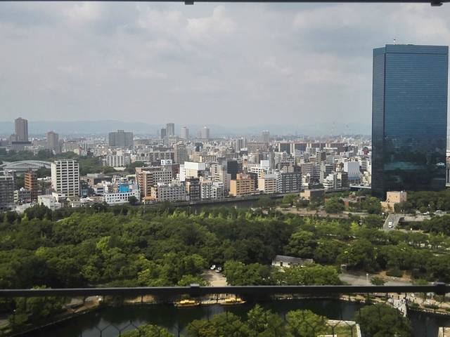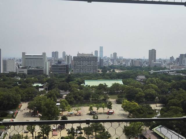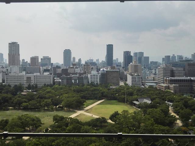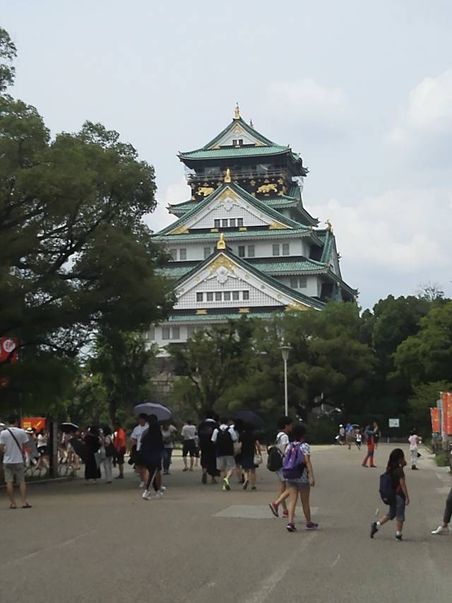 今天主要计划就是市区景点,首先是大阪城天守阁。外围的公园不错,今天预报33℃呢,不大感受地出来。而且发现一个奇怪的事情:很多日本人大中午的在公园里锻炼,跑步的前后见了上十个,男女老少都有,还有一位猛男太阳地里就地练俯卧撑。不过身材肤色确实好,就是染一黄头发,有点败笔了。嘿嘿,没好意思给猛男拍照啊