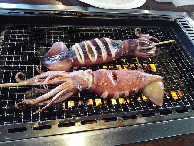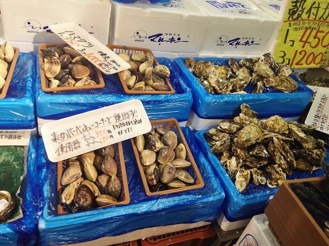 不过作为旅游胜地的白滨怎么可能这么少人呢!等我们来到海鲜市场后才发现,原来人都跑这里来了。海鲜市场规模不小,有熟食卖,也有新鲜海鲜,可以自己BBQ。我们当然选择后者了,不过也有一个很重要的原因是熟食区人太多啦~