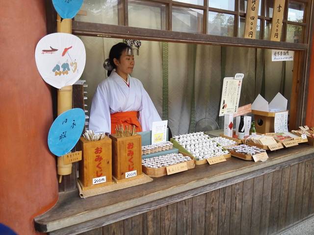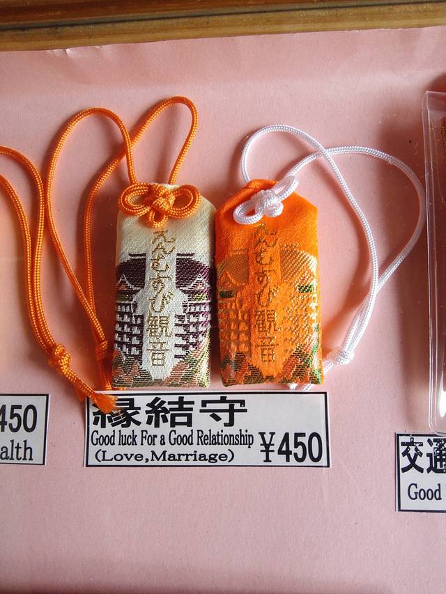这个装束让我想到《犬夜叉》里的桔梗(其实我也没看过几本日本漫画啦),只是那个头饰实在不懂。作为来日本的纪念,买了个保健康平安的符,想想健康还是比什么发财啊,升官啊,姻缘啊都重要些。