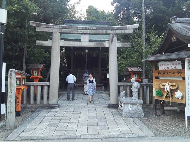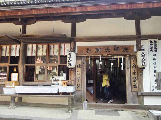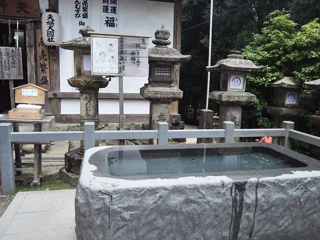 奈良公园里面还有很多小神社,比如这个“夫妇大国社”,要夫妻俩去拜的,门口还有一个小池子,好像把里面卖的一种纸拿来洗,可以显现出图画来。