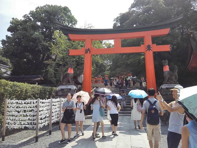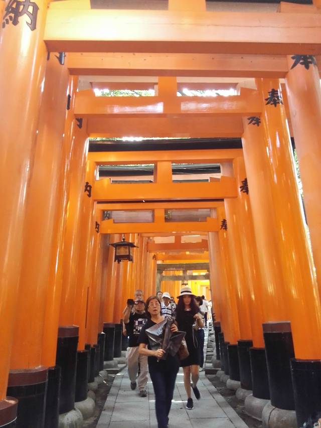 首先坐类似城际高铁的jr线来到稻荷,这里的伏见稻荷大社,据说是外国人中人气最高的寺庙,所以人多那是必然的。突然发现,原来我们自己也是老外了,好不习惯
