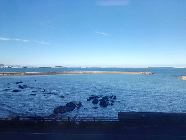 于是我们在车站等了一个多小时,三点多坐车,一个半小时到终点站,拿了东西,再等一个小时,坐上反方向的车,一个半小时回白滨。咱也只能在火车上拍拍照,欣赏一下美丽的海景了