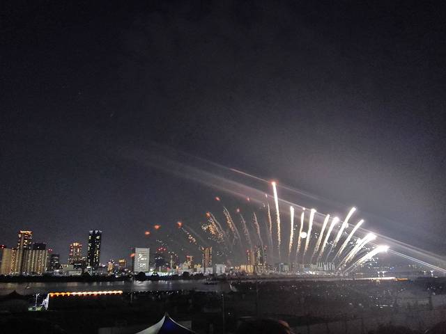 七点四十,花火大会准时开始,真的是火树银花绚烂璀璨,不愧为关西三大花火之一,照片拍了太多,随便放几张,请大家自行感受