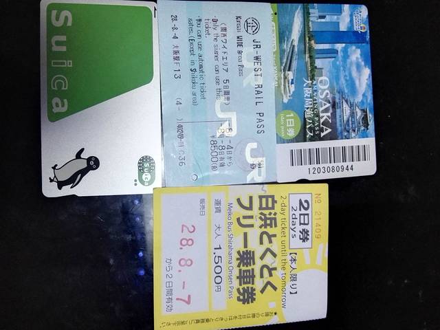 2、西瓜卡和各种通票。比如JR线5日通票,大阪一日游通票,白滨两日通票等,基本就是这个周期内公共交通可以不用再掏钱了,能省多少钱我们没有算,但是很方便啊。