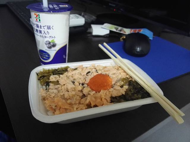 说一下吃的,很多人看了朋友圈说感觉我们吃得太简单,和在青岛时没法比。我只想说,那是当然,全世界有哪里可以和我们大吃货国比的,看看我今天的三餐,除了中午是拉面加清酒(顺便说一句,清酒不错,味甜,但有点后劲),另外两餐都是为了感受日本的便利店便当文化。三餐合计差不多2000日元,是这几天吃得最省的。