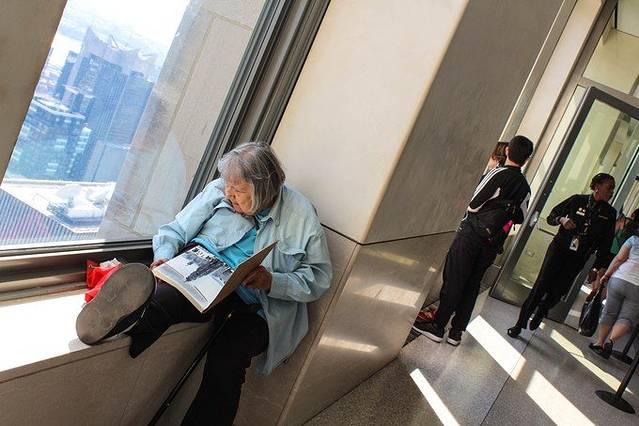 在窗边画帝国大厦的老奶奶。看到觉得心头一暖。