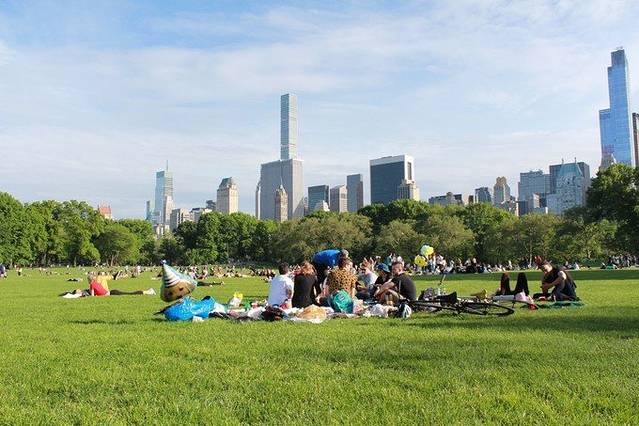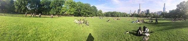 从西到东,从中心到南边,我们几乎徒步横穿竖穿了整个中央公园。在喧嚣和繁华的都市中心有这样一片心灵净土,晒太阳、跑步、骑车、野餐、约会,纽约人一定在熙熙攘攘的人群中享受着这片绿地带给他们的生活美好。身在其中,多想每天清晨穿上运动衣,在 Central Park 里或是Hudson River 边跑个马拉松大汗淋漓。这次是没有机会了,但也小小地满足了下,在草地上做俯卧撑。哈哈。