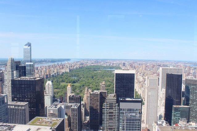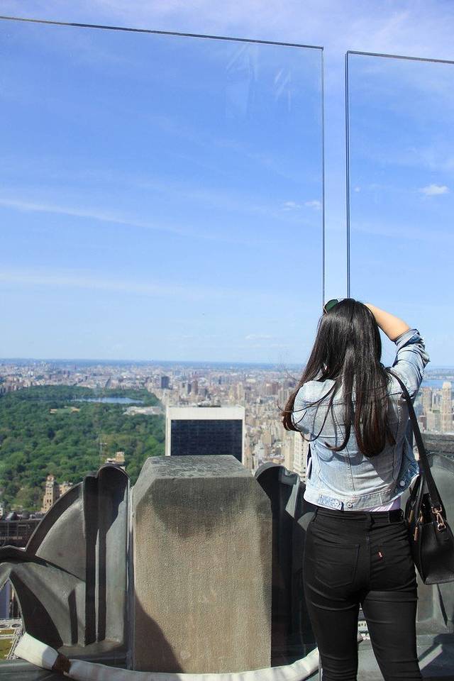 没有选择帝国大厦,Rockefeller Center是纽约第二高楼,一共67楼。在上面可以看到城市全景。中央公园、帝国大厦一览无遗。第一天去的时候天气非常好,花了1个多小时在上面观景、拍照。虽然排队登顶的人非常多,却也很快就上去了。