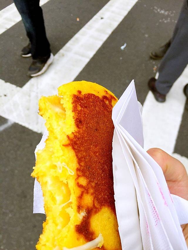 用玉米做的饼里夹了厚厚热乎乎的cheese,咬上一口,热乎乎的真是太太幸福啦!