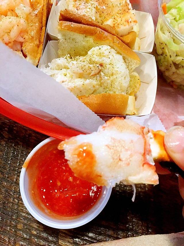 和小伙伴share一个双人套餐,里面分别有三小个虾肉,蟹肉,龙虾肉的三明治,还有两个小蟹钳,再加一小碗沙拉或者一小包薯片任选。 海鲜凉凉的特别新鲜!裹了他家的sauce,更加凸显海鲜的鲜嫩爽口度。一口下去,暴走的疲惫都消失啦!