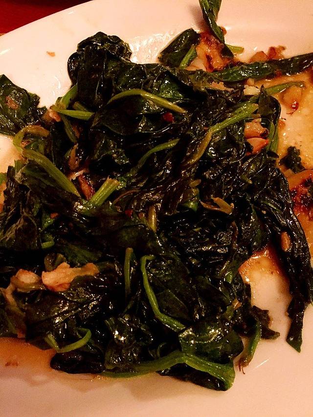 先上的黄油蒜炒菠菜味道不错哦!很香。加分!