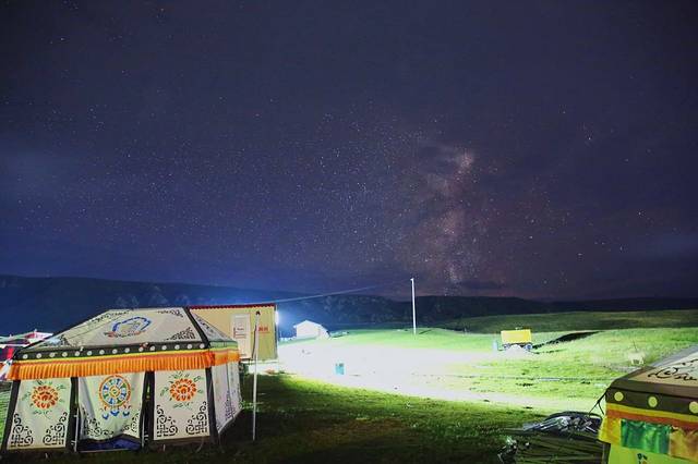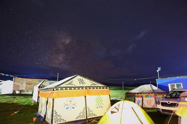 早上在西宁睡个懒觉,起床寻觅吃点美食,逛个超市买点零食储备,主要是香肠、士力架、水果、矿泉水、牛肉干、泡椒凤爪等,看个人口味。17:00在西宁火车站办理租车,四人集合,开到黑马河住宿,如果时间充裕,建议白天开这段路,因为路上风景很好,晚上开就看不到了,但是如果时间不允许,也是没有办法。西宁到黑马河开了差不多5个小时,入住黑马河兄弟连驿站,可以自带帐篷,也可以住他们的帐篷。因为太晚了,没有赶上他们的篝火晚会,但是有漫天的繁星,也是很美丽。晚上的主要任务是搭帐篷