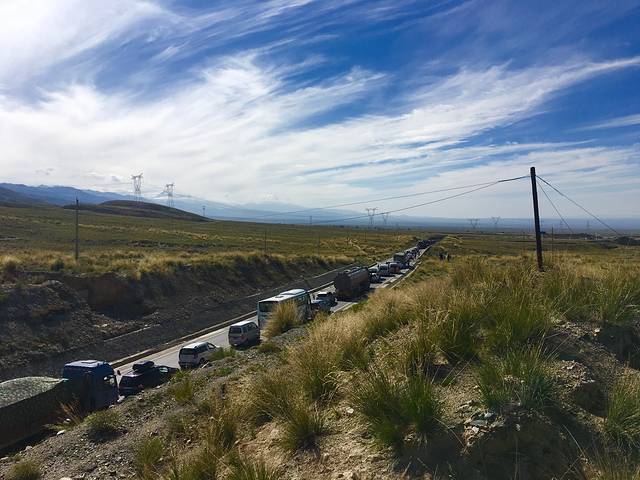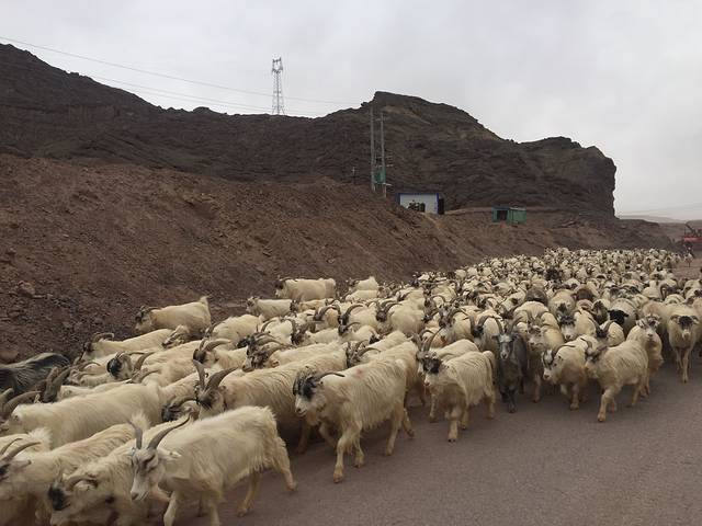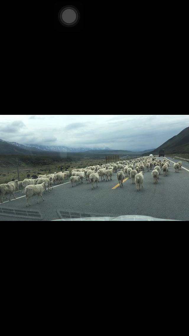 国道上的羊群,这种情况很多,只好慢慢跟在后面,一只羊可是很贵的