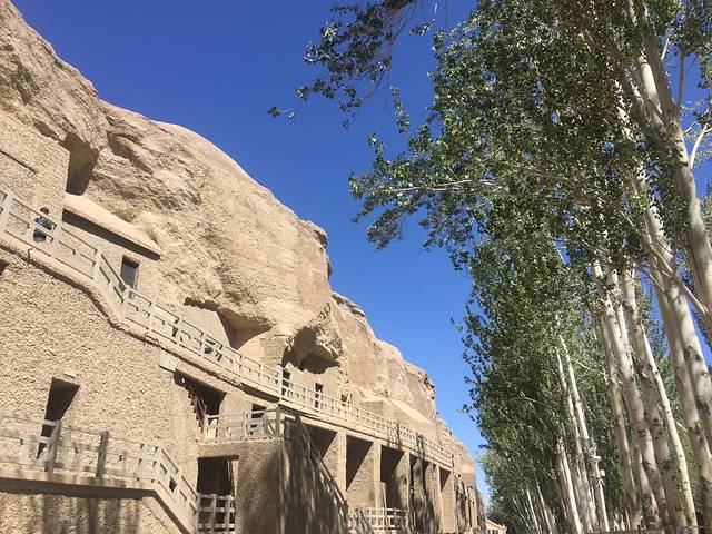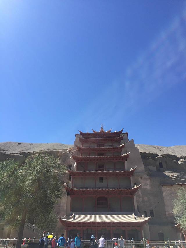 上午去了莫高窟,莫高窟的票要提前在网上预约,因为他有人流的限制,提前半小时到售票处换票。有自动取票机。显示观看环球荧幕看莫高窟的电影,然后乘坐景区大巴到达莫高窟,有专门的导游带领,每个导游会带去8个窟,其余时间可以自由拍照。