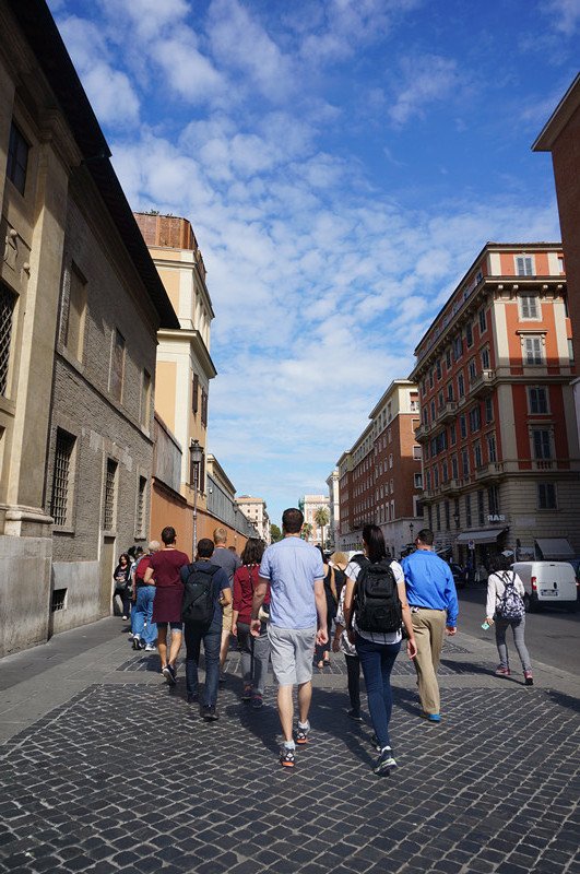 想着跟着小团队进去多方便。于是乎。。再等了将近一小时以后临时小团队终于组成,跟着小团队又走了+等待半个小时才进入梵蒂冈。问题是这个小团队太慢太慢太慢。。。后来。。我们就自己走了。结果就是我们迷路了。。。没进去圣彼得大教堂。呵呵呵呵