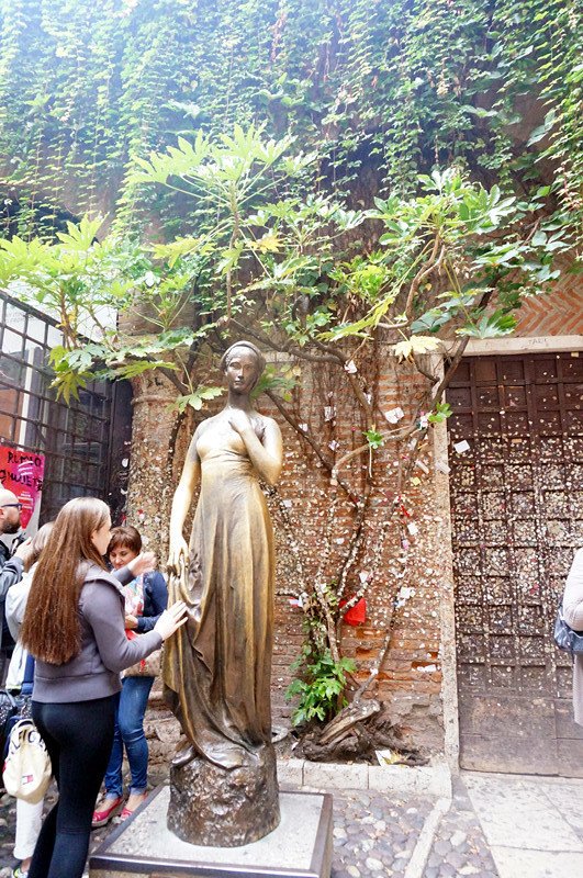 到了这里你会发现,大家都在摸朱丽叶雕塑的胸部,朱丽叶的右胸和手臂因为被频繁触摸已经非常光滑明亮。传说触摸朱丽叶雕像的右胸和右臂,就可以获得爱情。无数怀着对爱情美好憧憬的情侣从世界各地来到这里,触摸一下寻求好运。当然我也去摸啦,当时排队的都是女生在摸。Luke爸爸实在不好意思在众目睽睽之下去摸哈哈哈~~~